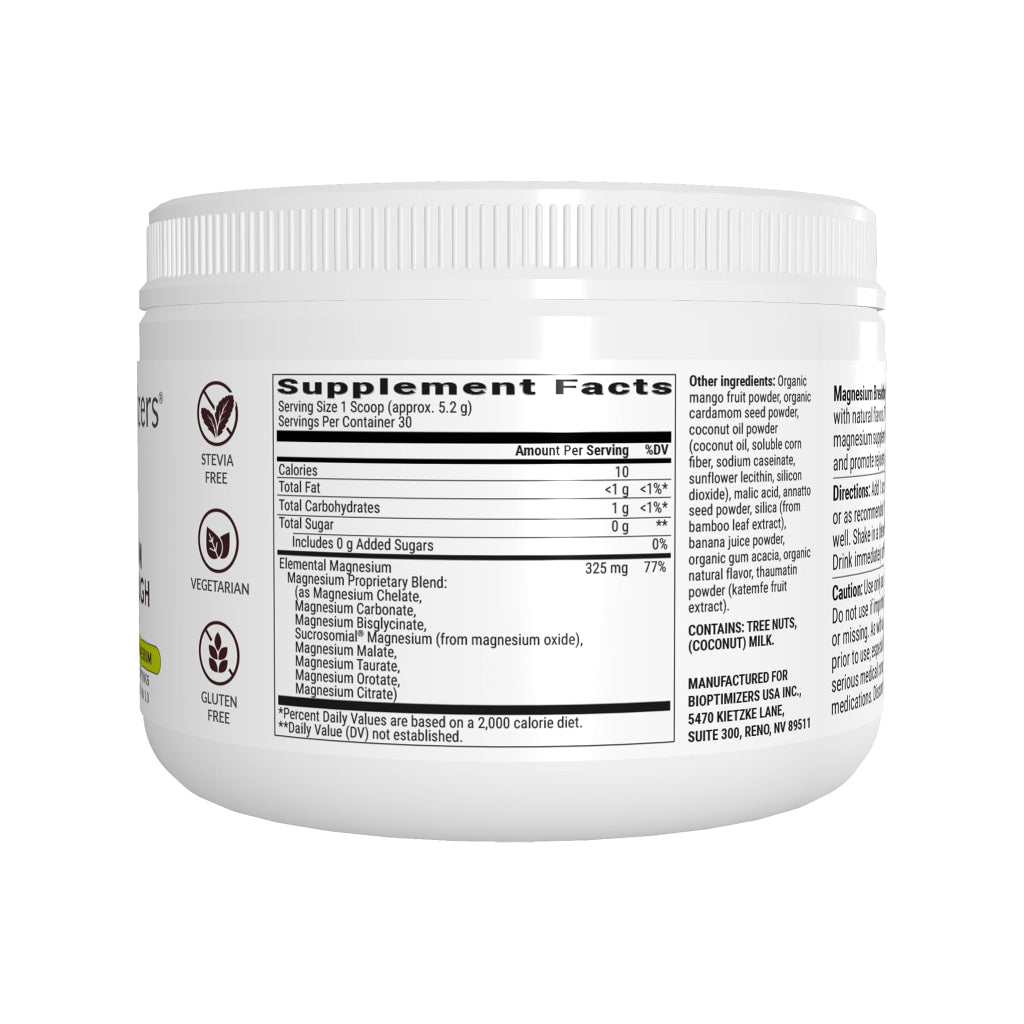 Magnesium Breakthrough od BiOptimizers přináší špičkovou směs 8 různých forem hořčíku s vysokou vstřebatelností pro maximální účinek. Díky rozpustné formě s lahodnou chutí je užívání tohoto doplňku jednoduché, účinné a chutné.